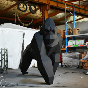 Son design géométrique, composé de facettes angulaires, évoque la force, la stabilité et la présence imposante du gorille, tout en lui conférant une modernité sculpturale unique.